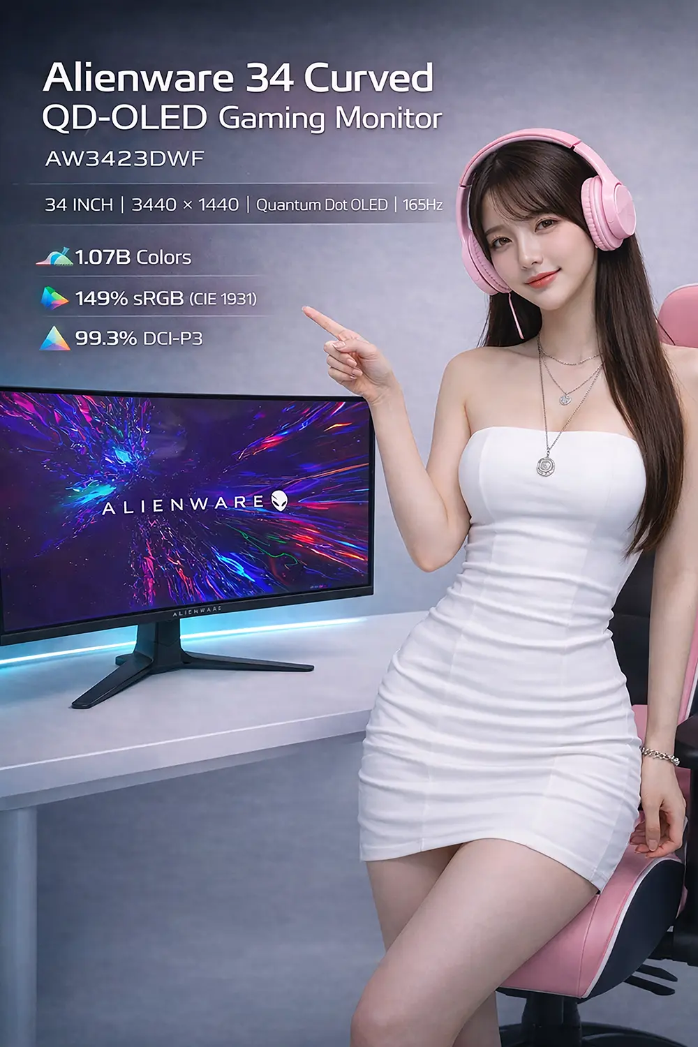 Màn hình cong 2nd Dell Alienware 34 Curved QD-OLED Gaming Monitor AW3423DWF | Quantum Dot OLED | WQHD 3440 x 1440 max 165Hz | 1.07 tỷ màu