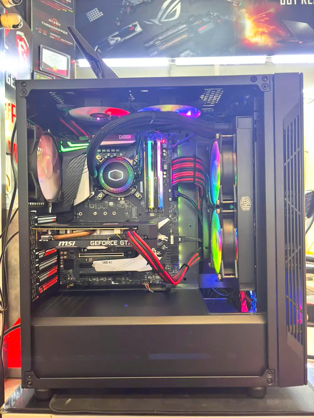 CASE PC 2ND CORE I9-9900K | MAIN MSI Z390 WIFI | TẢN NƯỚC AIO COLLERMASTER | RAM 16GB RGB | 256GB NVMe | NGUỒN 650W | GTX 1660 6GB | CASE MSI FORGE 100R